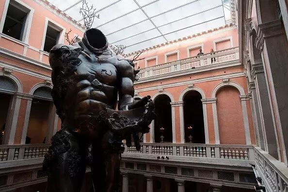 这是达米恩·赫斯特近10年来的第一场个展,以上关于 Cif Amotan II 的故事纯属虚构, 这只是赫斯特为展览打造的“故事背景”而已。 展览名为“不可思议号的沉船珍宝”(Treasures from the Wreck of the Unbelievable),4月9日于威尼斯开放,189件展品尽是珠光宝气的庞然大物,填满了威尼斯最重要的两个私人美术馆——格拉西宫(Palazzo Grassi)和海关大楼(Punta della Dogana),总占地5000平方米;这也很有可能是当代艺术史上斥资最巨的一场展览——达米恩·赫斯特本人自掏腰包的数字即达5000万欧元。苏富比欧洲主席奥利弗·巴克(Oliver Barker)对《纽约时报》(The New York Times)表示,时隔13年达米恩·赫斯特再度办展,“就像是猫王再度回到拉斯维加斯的舞台上”。