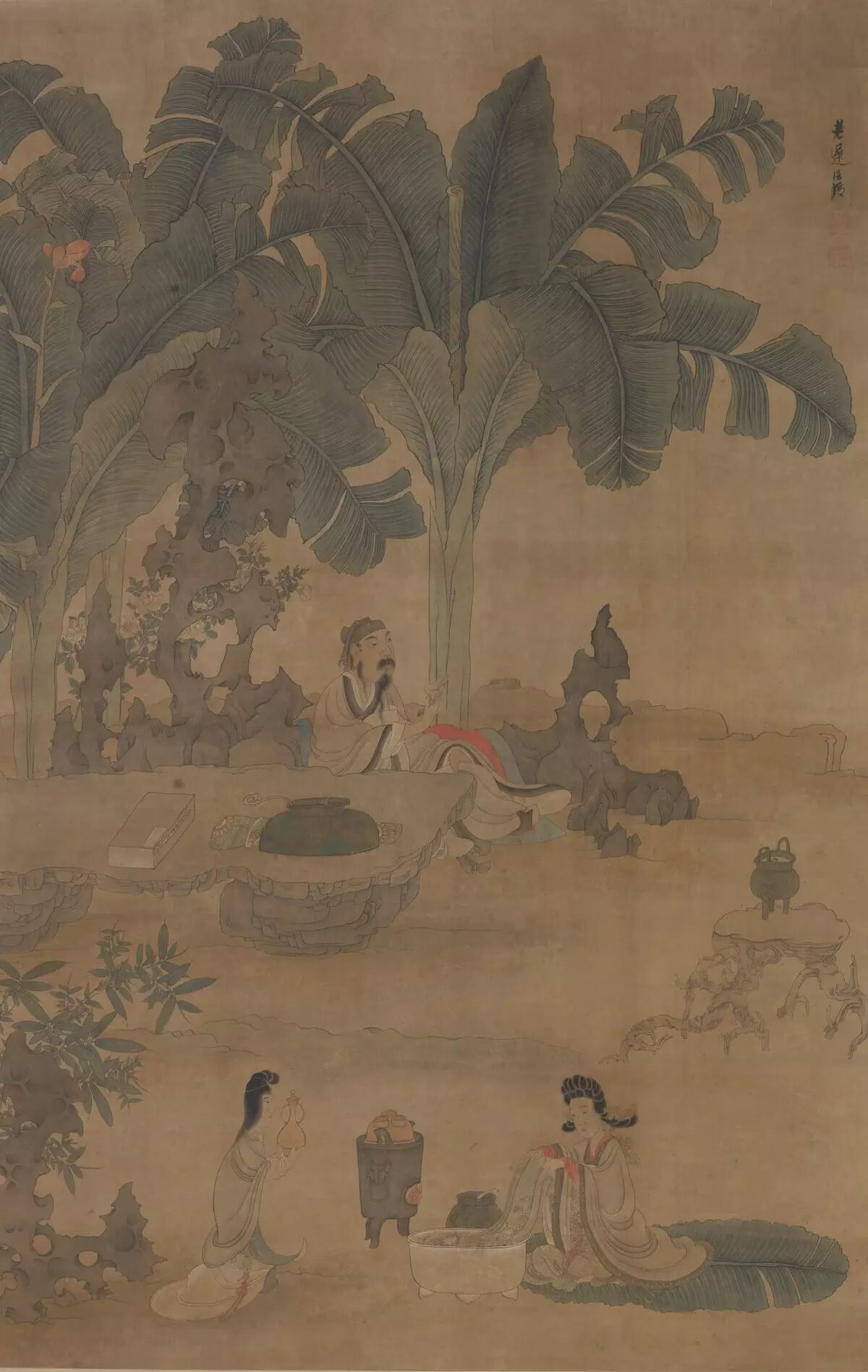 ▲ 陈洪绶的《蕉林酌酒图轴》
