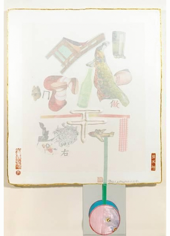 劳森伯格和他的团队在上海的海报商店挑选了富有地方特色的图片,如年画、香烟牌上的女孩、花朵、水果和一些象征好运的图像。这一特殊的拼贴系列作品中呈现了七个汉字,分别为个人(individual)、变(change)、号(howl)、光(light)、干(trunk)、丹心(red heart)、真(truth)。作品以三十层纸和一层丝绸为基础,每一个汉字都被添加在纸浆的浮雕上。在上海获得的海报图像上还粘覆着一层薄薄的透明质。之后,艺术家又为这些作品添加了金箔和布制圆章。
