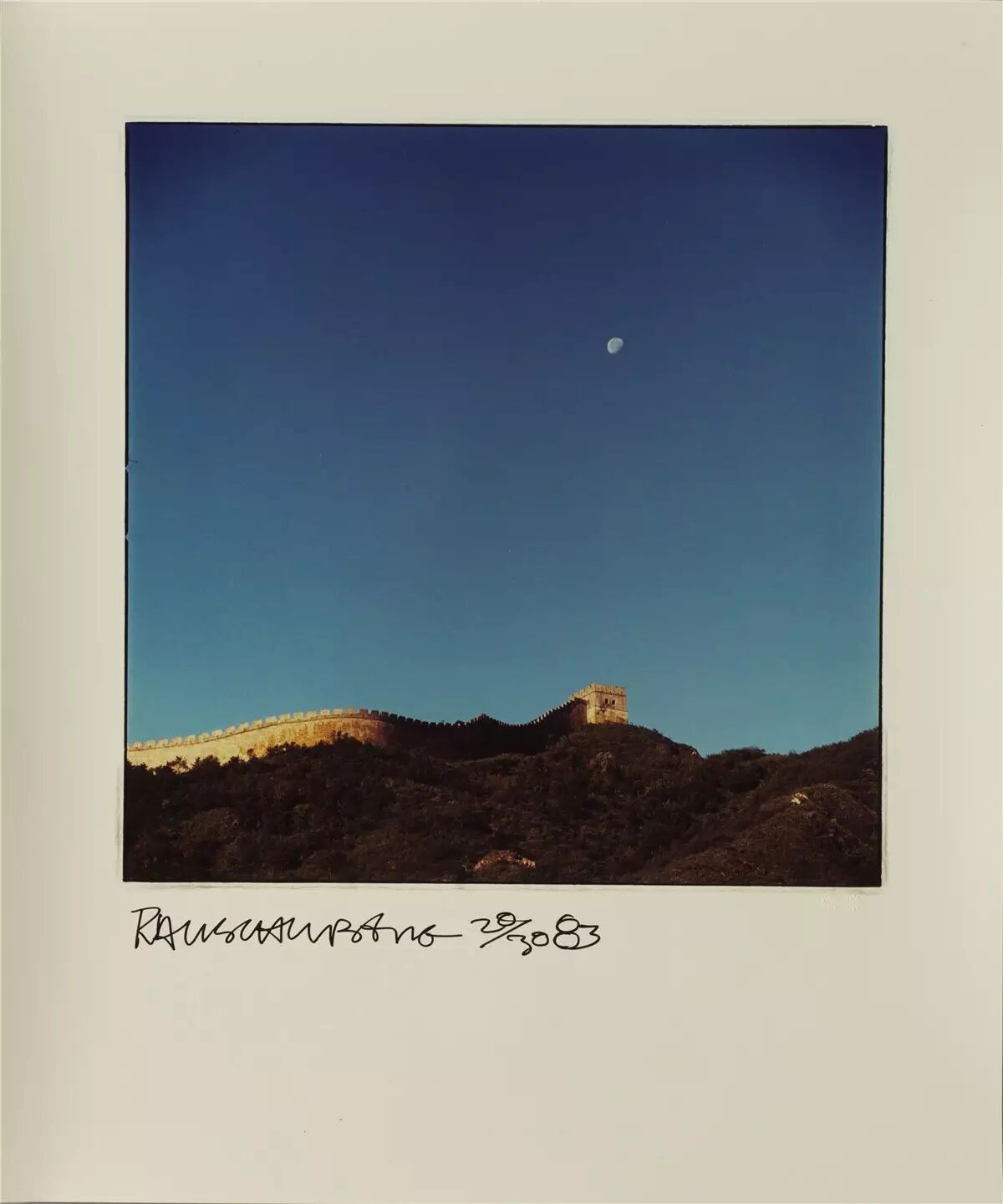 不过,在1982年劳森伯格来到中国之时,这里对他还几乎一无所知。在这个夏天,劳森伯格于安徽泾县宣纸厂进行了一系列实验,并创作了《七个字》等作品。在本次展览的尾声部分,观众所看到的《〈中国夏宫〉研究》系列作品就创作于此时。在劳森伯格的镜头下,80年代的中国以凉席上的蒲扇、街头售卖的紫砂壶、长城上的一轮弯月呈现出既日常又陌生的细节。这也是劳森伯格一生中唯一一件纯粹以摄影为媒介的作品。