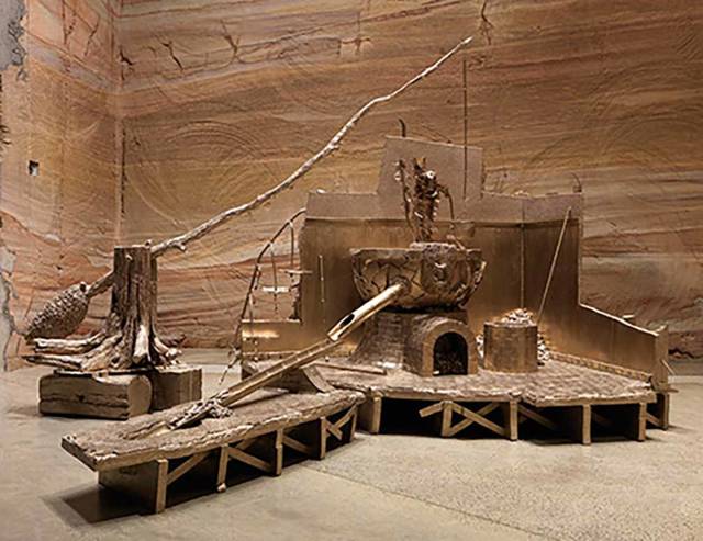 第二天,大家都涌到奥德翁剧院倾听沃尔什和巴尼的对谈,稍后是由沃尔什创办的古今艺术博物馆(MONA)巴尼个展的预展——《重生之河》影片创作中的附属产品,雕塑、绘画、脚本等都在这里展出。“这太让人激动了,”巴尼说,“我曾在巴西的巴伊亚、英国的马恩岛,以及其他一些偏远地方创作过项目,在一个形态可见的地方工作总是让我心满意足。我很享受在一个不受拘束的地方开办展览,没有过多打扰。”
