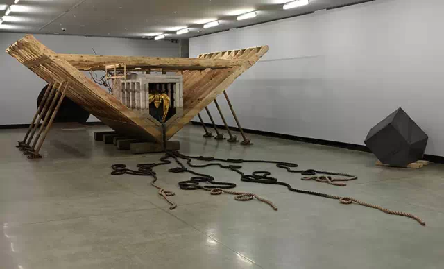 马修·巴尼的展览“重生之河”在古今艺术博物馆(MONA),来自影片创作中的镭船(Boat of Ra)