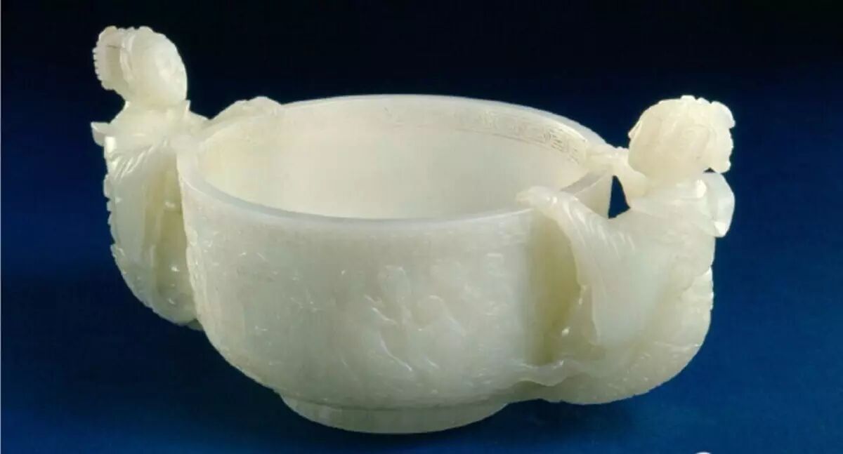 ▲ 清乾隆仿古款白玉双耳仙人杯
