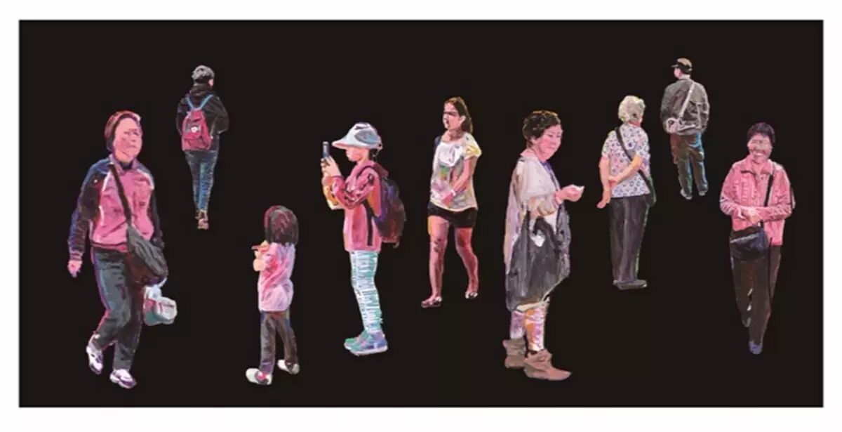 ▲ 邓凝姿《一百零八个在身边的女子》,2016,绘画人物真人尺寸影像投射,头戴式虚拟现实眼镜观看,图片来源:香港文化博物馆