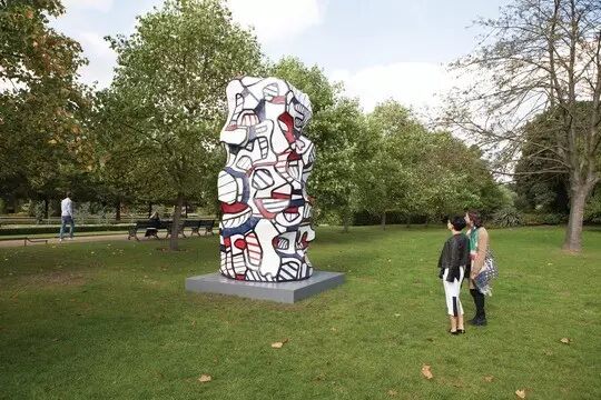 《Tour aux récits》这件作品是法国画家、雕塑家让·杜布菲(Jean Dubuffet)在艺术创作成熟时期所创作的作品,4米高的雕塑是艺术家《小时放大镜》(Hourloupe)系列作品的延伸,最初来源于他在电话上的涂鸦。这件作品使人联想到儿童涂鸦的自发乐趣,也有史前洞窟壁画的野性意味和西方城市街道涂抹画的随意性。