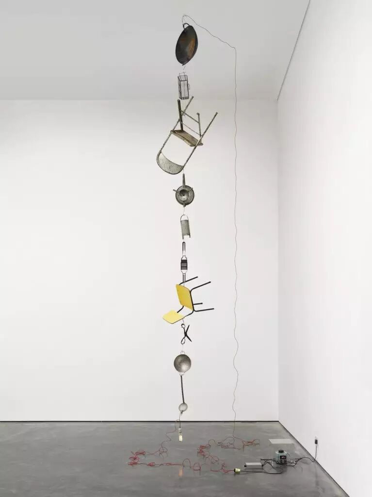 作为一位出生于黎巴嫩的巴勒斯坦艺术家,莫娜·哈特姆(Mona Hatoum)吸收了后现代主义的理想的艺术形式并将它们转化成象征个体存在的矛盾符号,用多样的媒介与装置创造出富有诗意与政治意味的作品。在《带电的(变化2)》( Electrified (variable II))中,她将厨房用具、电线与灯泡等日常家用器具用一条发出声响的电流串联到一起,用超现实主义的幽默感与诡谲效果给观众感性的启发与理性的思考。