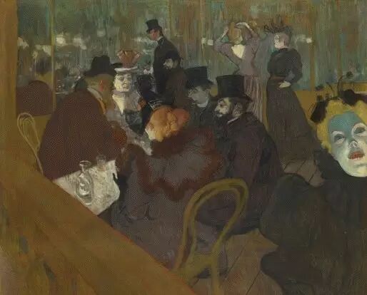 ▲ 图卢兹-洛特雷克(Henri de Toulouse-Lautrec)《Au Moulin Rouge》,1892-1895年,图片来源:奥赛博物馆
