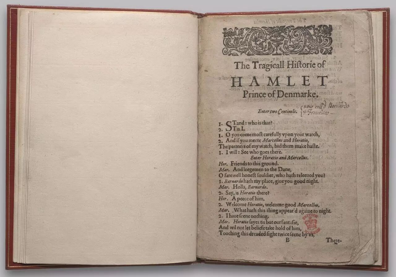 ▲ 最原始的《哈姆雷特》剧本,全世界仅两件。该册出版于1603年。图片来源:大英图书馆