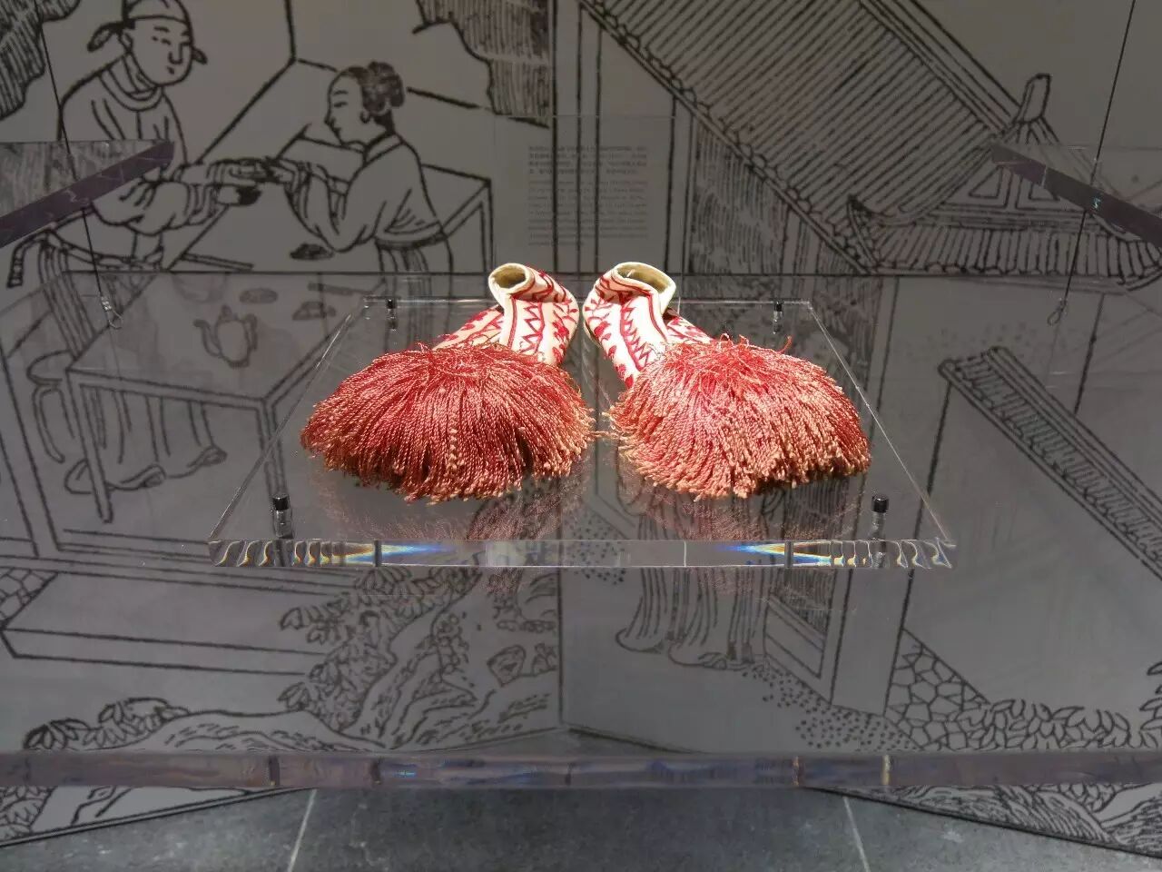 ▲ 表演艺术家张充和先生早年在美国饰演杜丽娘时所穿戴的绣鞋,图片来源:TANC