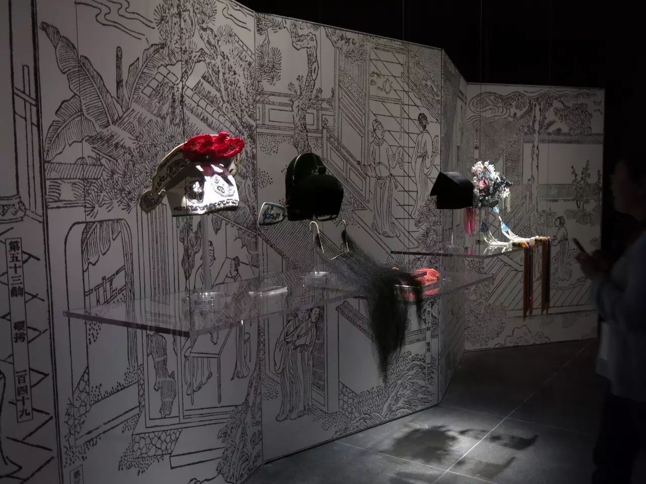 ▲ 木心美术馆“莎士比亚/汤显祖”展览现场折页屏风与演出穿戴,图片来源:TANC