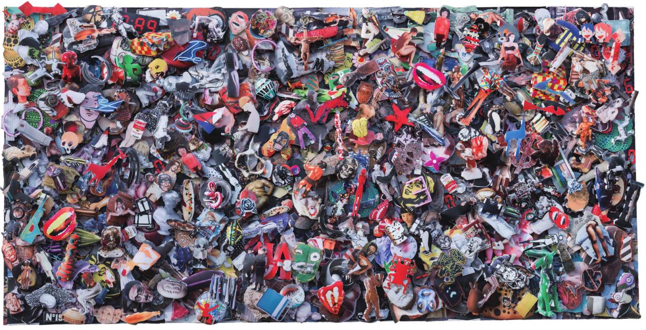 在南京美展中,岳敏君带来其新的尝试《琐碎》系列作品,通过对于图像的选取和裁剪,以立体的方式对图像进行拼贴,看似波普主义的图像平层被所有形象的独立立体支撑进一步丰富,被截取的图像个体在脱离了原本语言环境后重新组合之下生产新的意义。王广义在今年创作的霓虹灯装置艺术作品《普天之下-莫非王土》将各时期、各国家绘制的三十余件地图并置,以艺术的方式提供一个“新秩序”的可能性,诠释其“地缘政治”的重新思考。