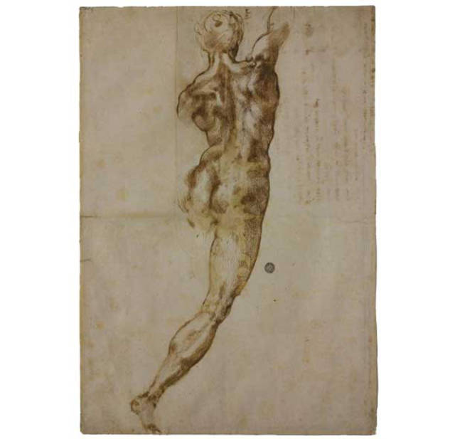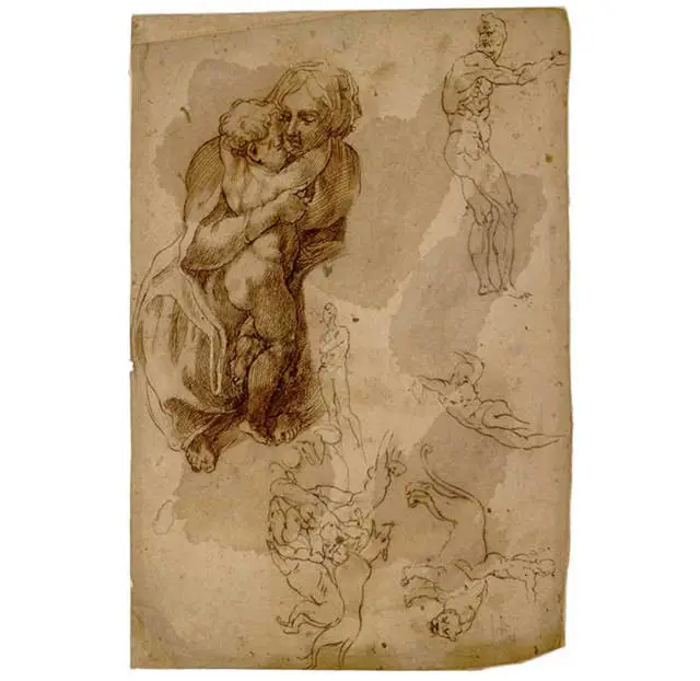 1508年左右由米开朗琪罗的一位学生绘制的手稿,其构图及主题与雕像惊人的一致