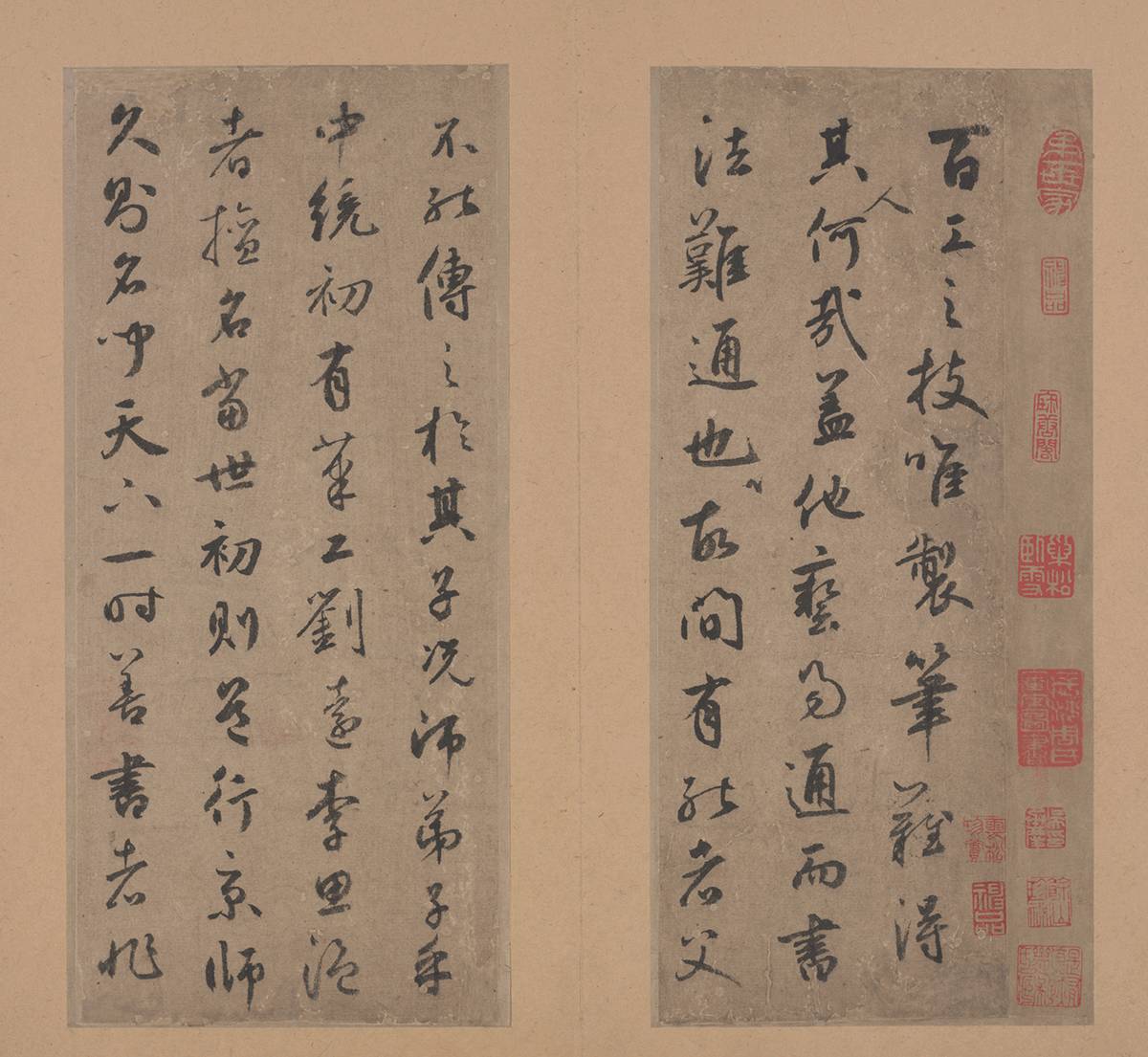 顾氏收藏之中大量藏品来源于清代琉璃厂古物名号,如博古斋、德宝斋、松竹斋、论古斋等,这些名号中有不少是顾文彬经常拜访的老友。同治年间,顾文彬从老友松筠庵心泉和尚见到《释智永真草千字文》后欣喜不已,曾多次专程前往观看,最后不惜重金将其购归家中。这件作品后来也成为过云楼收藏中的“天子第一号藏品”。顾文彬在家书中提及这件作品,字里行间透露着藏得珍品的喜悦:“智永卷反复审玩,的是奇宝,京中赏鉴家不少,蹉跎至今,仍落吾手,殆有夙缘。”
