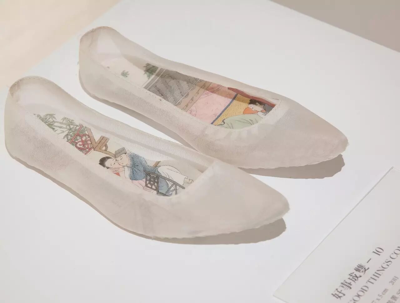 ▲ 彭薇《好事成双 10》,绢鞋装置,24 x 18 x 5 cm,2016年