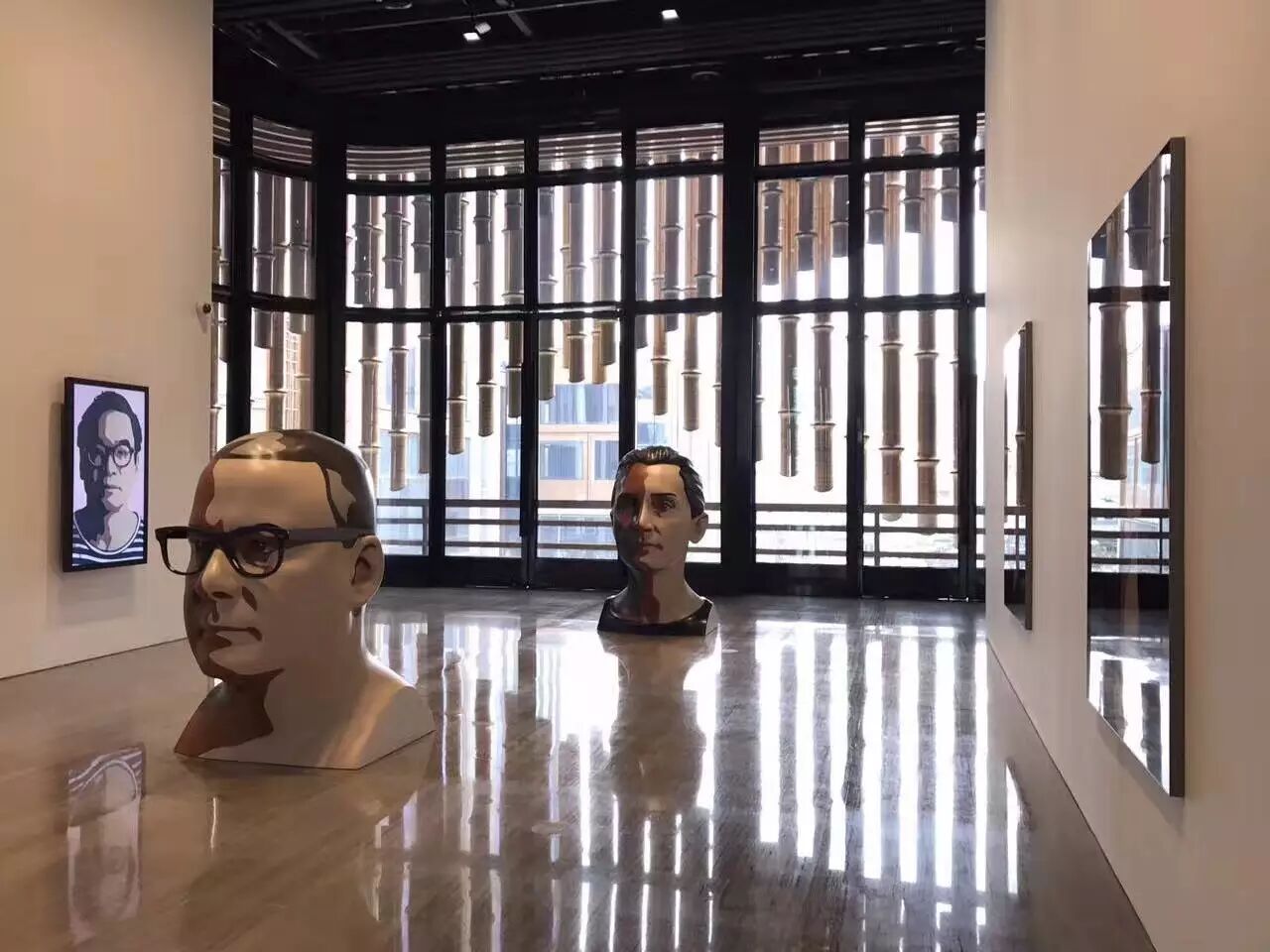 第四展区的主题是头像,与第一展区的肖像不同,艺术家摆脱了惯常运用的黑色线条与平面化手法,呈现了立体感的人物头像。他甚至运用古老的马赛克镶嵌技艺创作了人物头像,还有树脂材料制作的大型人物头像。二楼展厅中央是一件名为《都市》的装置作品,如同摩天大楼贯穿在展区中央。