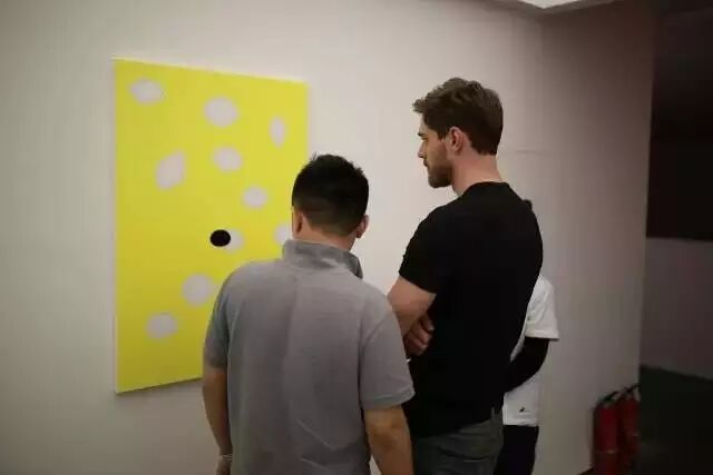 何翔宇的《橄榄油-过去的只是序曲》根据狭长的空间,勾勒出15米长的矩形线框,并且在轮廓内不断重复涂刷橄榄油。通过展期时间的变化,橄榄油以极其缓慢的速度沁入墙体并渗透至铅笔框线外,逐渐模糊规整的封闭边界。而正对“橄榄油”的,是艺术家另一件作品《13个柠檬》,这件作品来自何翔宇全新的柠檬绘画系列,该系列“意图围绕视觉表达的核心概念:如轮廓、边界与色彩,探讨一系列视觉感知和透视形成的机制”。