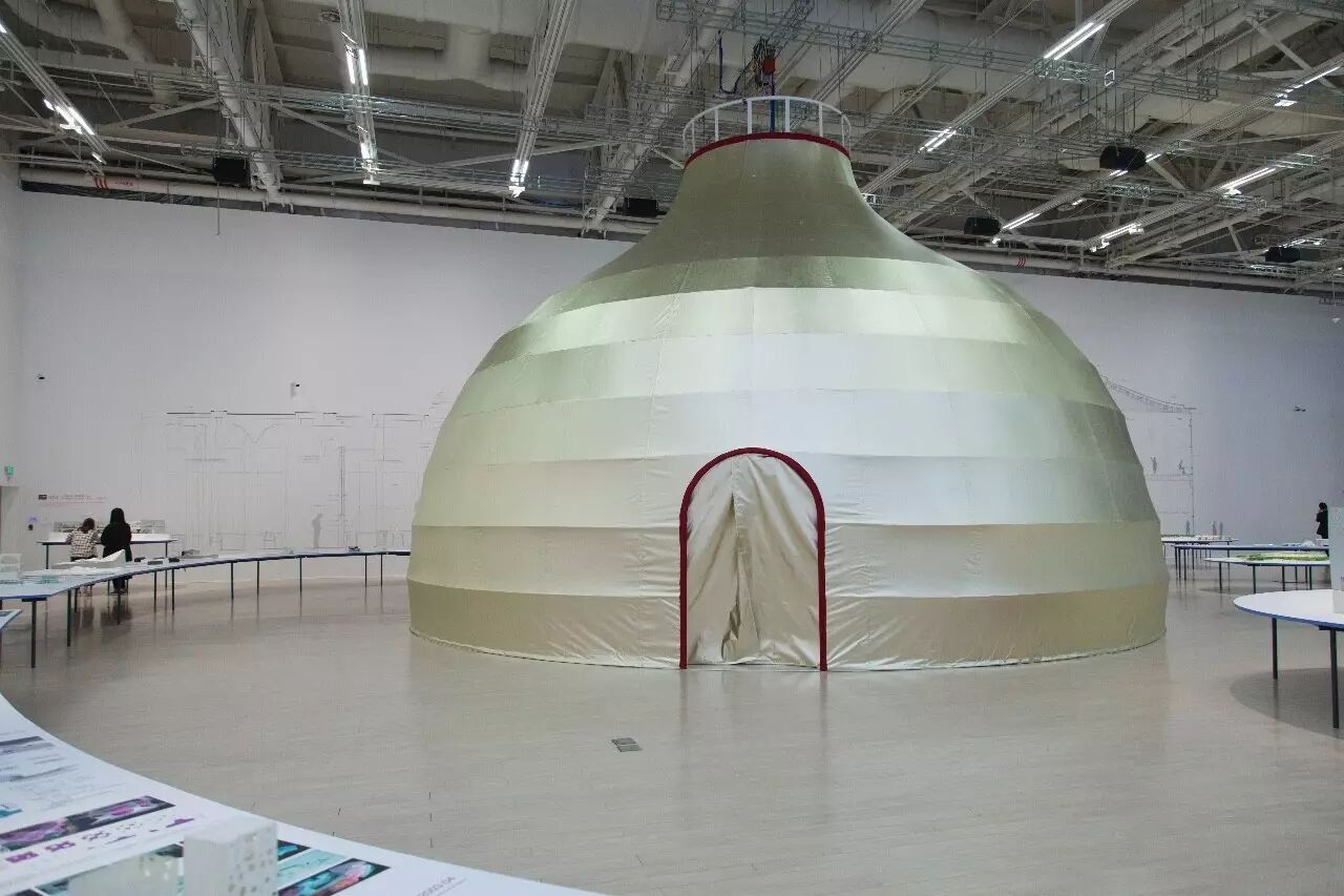 ▲ “伊东丰雄:曲水流思”展览现场“穹顶闲室”外观