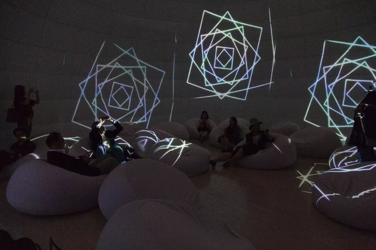 ▲ “伊东丰雄:曲水流思”展览现场“穹顶闲室”内休憩、观赏的观众
