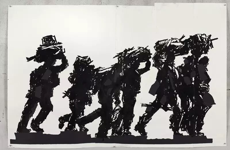▲ 威廉·肯特里奇(William Kentridge)作品《dessin pour Triumphs and Laments (Procession of Migrants)》,图片来源:Fondation Louis Vuitton