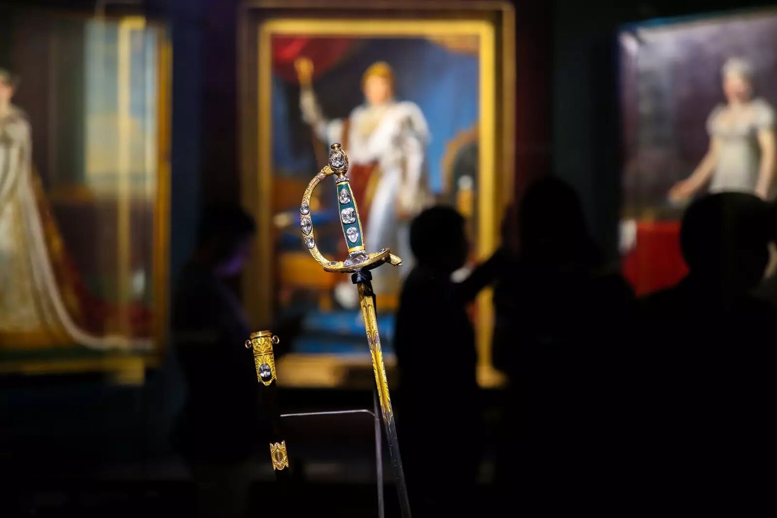 1804年12月2日,拿破仑佩戴着这把剑在巴黎圣母院举办了加冕大典。此外,宝剑还另镶了42颗同样来自法国国库的宝石。拿破仑希望借此赋予这柄宝剑更深层次的政治意义,即承袭前朝帝制更名正言顺地执掌法国大权。“艺术北京”品牌总监李孟夏同样被这把传奇之剑所折服,他认为在展场中它与背后身着加冕礼服的拿破仑一世的画像相互辉映,更能让观者体会到历史的厚重感。