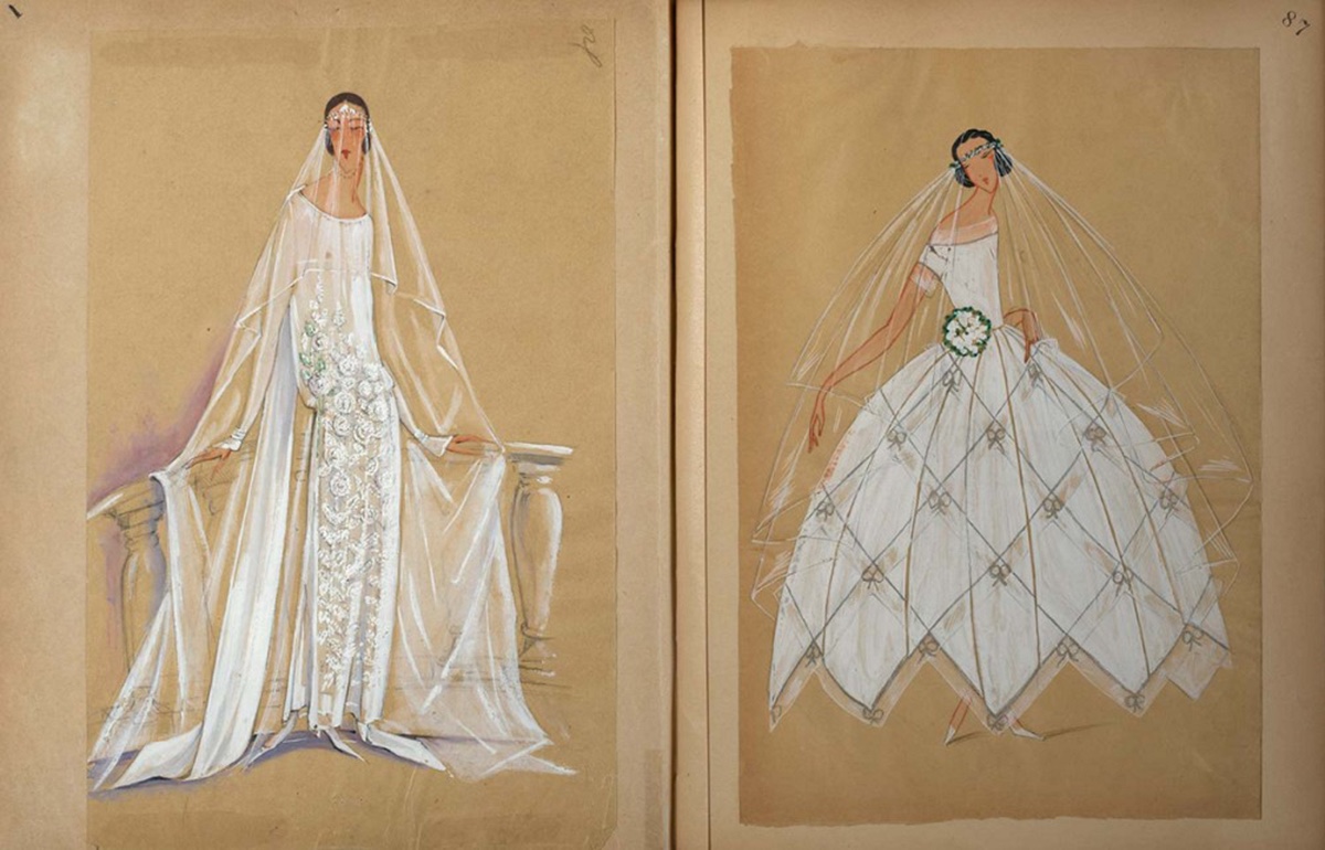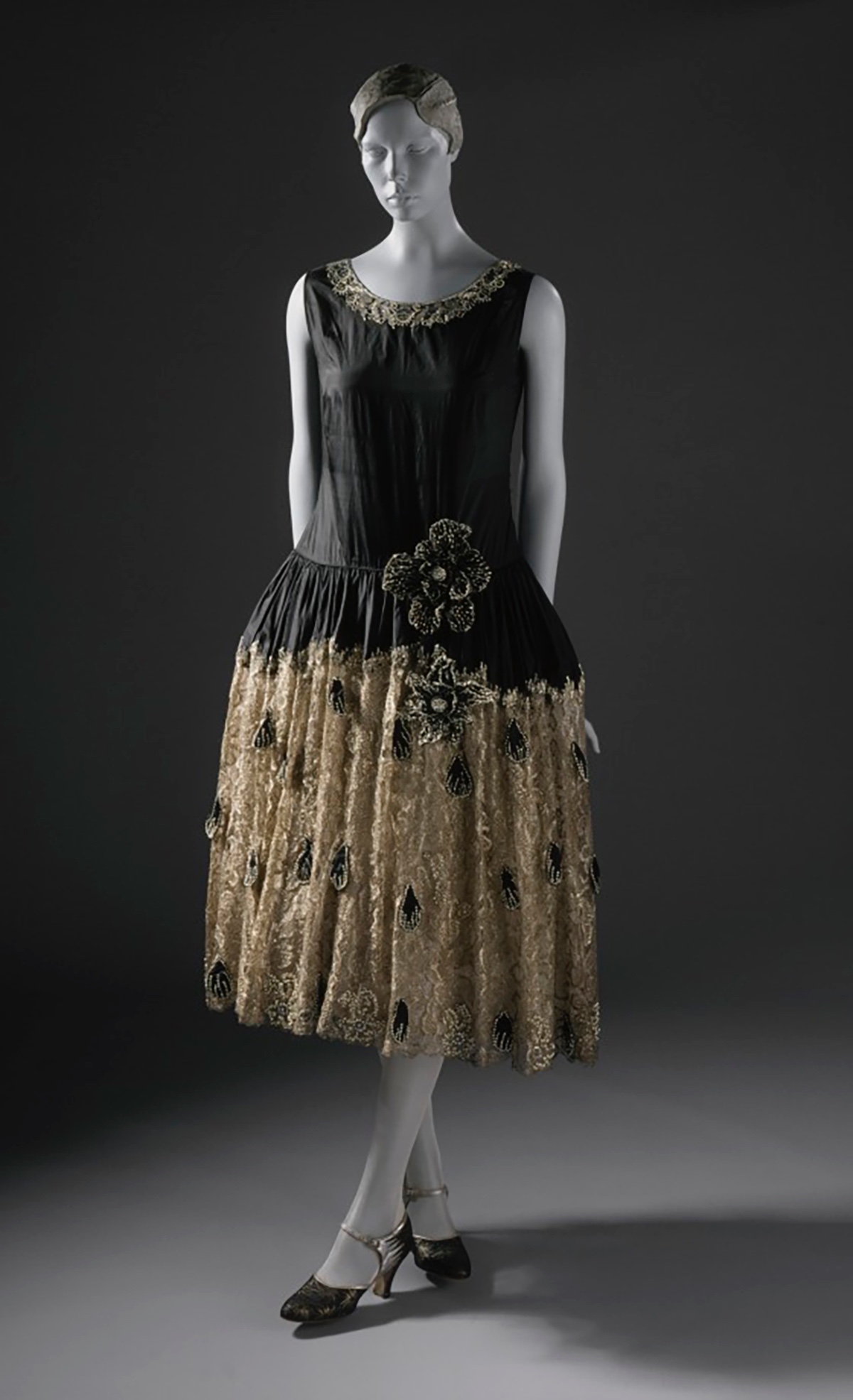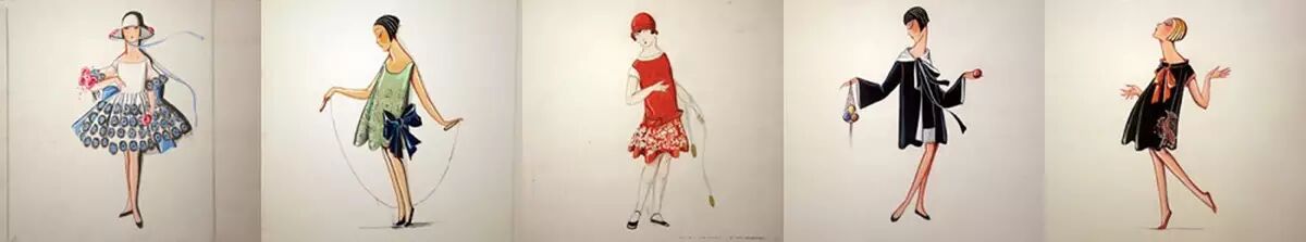 在 Jeanne Lanvin 的设计道路上,旅行日记、面料样本和艺术书籍是三类不可离身的宝贝,她以此积累创作灵感和好奇心,赋予面料、刺绣、缝纫、剪裁以艺术化的表达方式,修身、低腰和大摆裙的设计混合黑白几何图案和丝带、水晶、珠片、流苏等装饰,充满了18世纪的法式优雅。