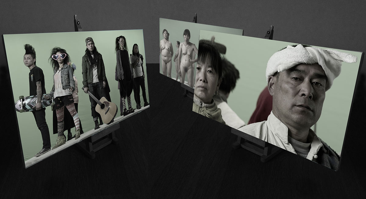 王功新作品,《雷哥的故事》(截屏), 8频道录像装置作品, 8台60寸高清电视屏幕,时间:6分59秒