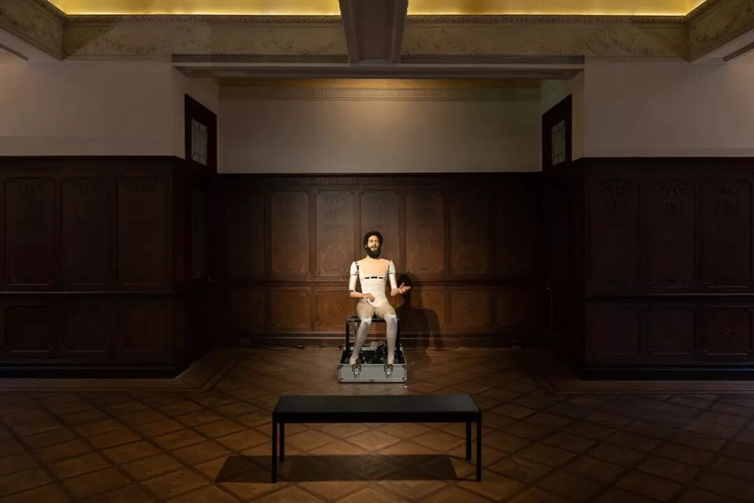 这个名为“致吃掉书卷之人子“(To the Son of Man Who Ate the Scroll)的机器人是艺术家为其2016年Prada基金会米兰展馆的展览所创作的。Goshka Macuga在接受《艺术新闻》采访时表示,“在2016年我于米兰Prada基金会的展览之后,我希望可以将这个机器人的故事延伸至一个新地点和新语境中。我一直认为将我过去的创作与新的场景结合是一件很有意思的事情。”一直以来Goshka Macuga的作品持续关注着如“时间”、“开始与结束”、“坍塌与重建”等开拓性议题,在当代艺术的语境中探讨“终结”这一主题的重要性。而喃喃自语的机器人作为展览的中心,亦将“我曾为何物?”这一主题从《弗兰肯斯坦》的历史语境中暂时转换至当下这个未来主义的场景中,将其从“虚构”暂时转换至“现实”。