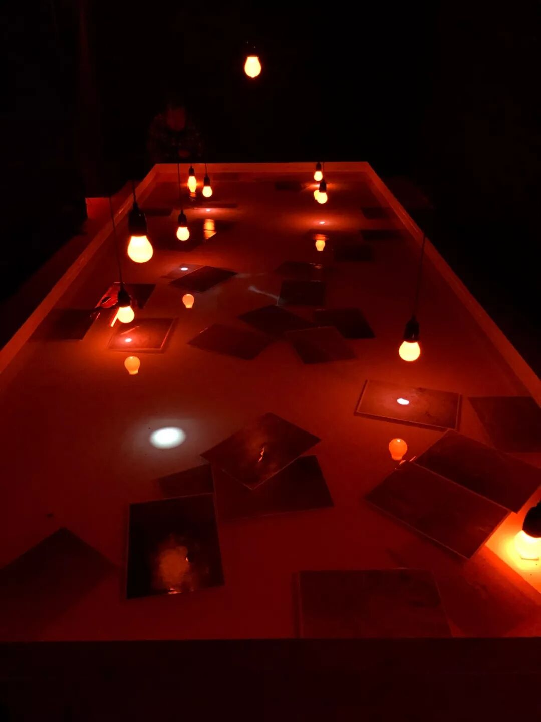 4月12日,王功新最新个人项目“潜影——与BIAO有关”在北京掩体空间开幕。位于段祺瑞政府旧址内的掩体空间曾为华北日军司令冈村宁次修筑的地下工事。在此,艺术家以一组特定场域装置作品对展览空间的历史进行着追索与丈量——话筒划过崎岖地面所产生的诡异响动在另一端转化为可见的烟尘明灭;作为地下空间唯一光源的多组红灯引发着有关冲印暗室和警戒的联想;不时浸入液体中的灯泡传递着危险与不安的信号;唯一坚固的,是一组整齐排列的混凝土雕塑,依旧闪动的红色被半埋入厚重之中。