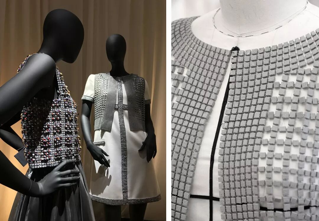 左:“Mademoiselle Privé”《走进香奈儿》展览现场,图片来源:TANC。右:香奈儿2014/15秋冬高级定制服系列,混凝土材质制作过程,摄影:Anne Combaz