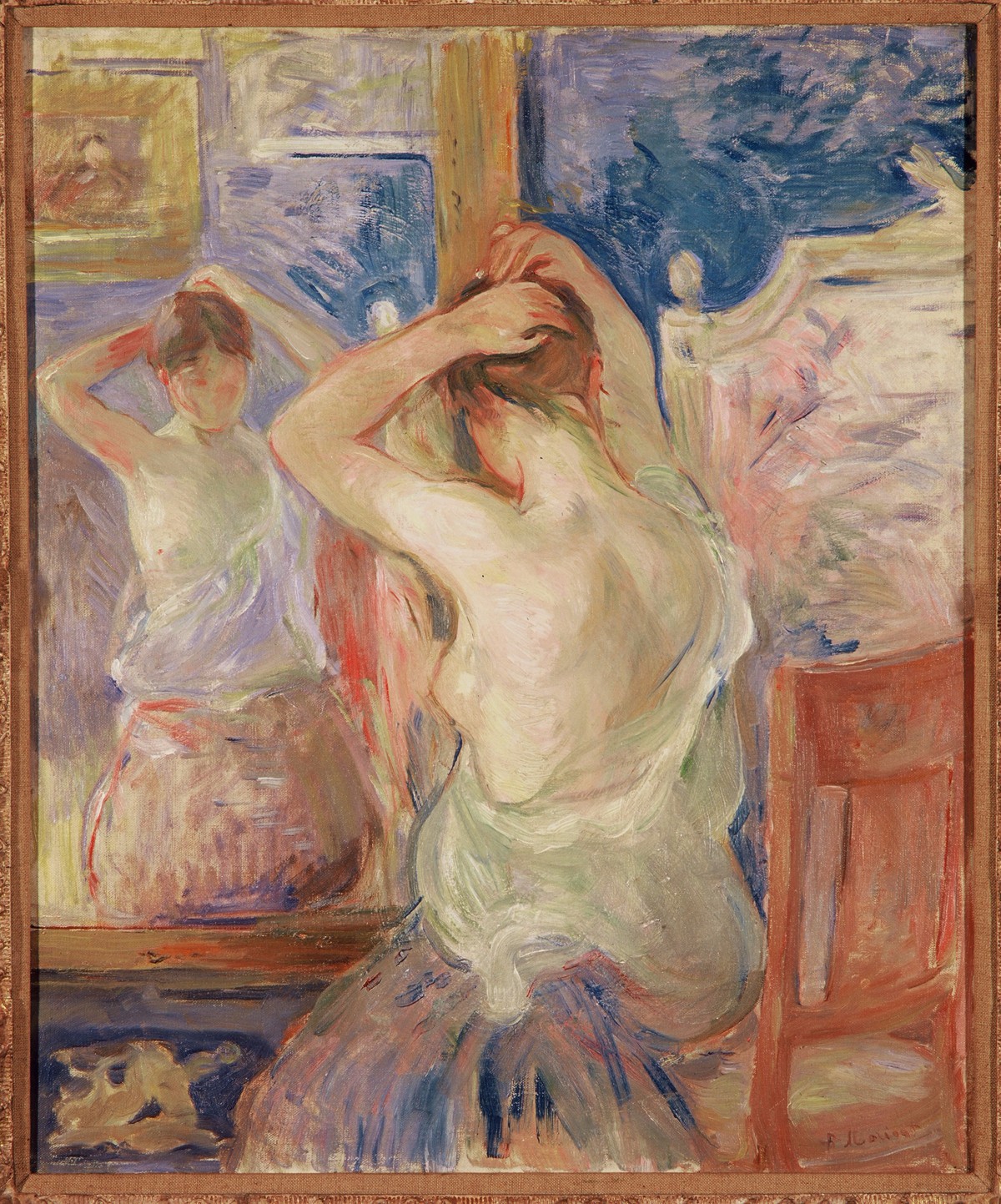 19世纪贝尔特·莫里索(Berthe Morisot)的作品,《在穿衣镜前》,属于瑞士马蒂尼Pierre Gianadda基金