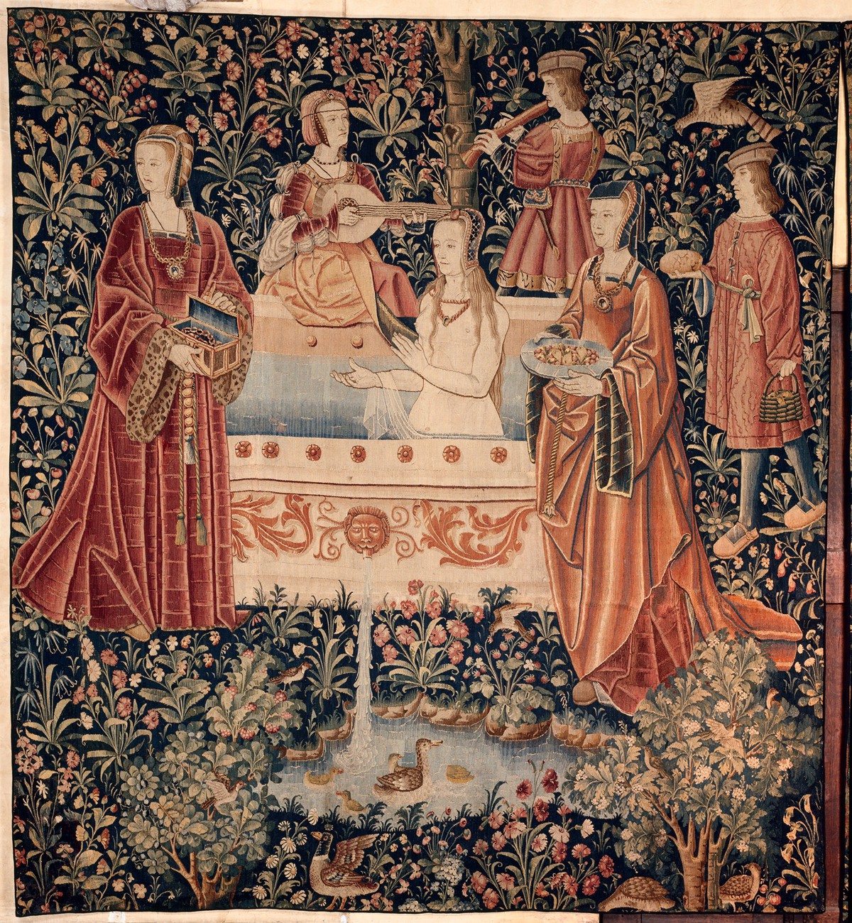 16世纪荷兰南部羊毛和丝质挂毯,描绘欧洲封建领主洗浴的场景,此作品为巴黎克卢尼国立中世纪博物馆(Musée de Cluny, musée national du Moyen Age)所藏