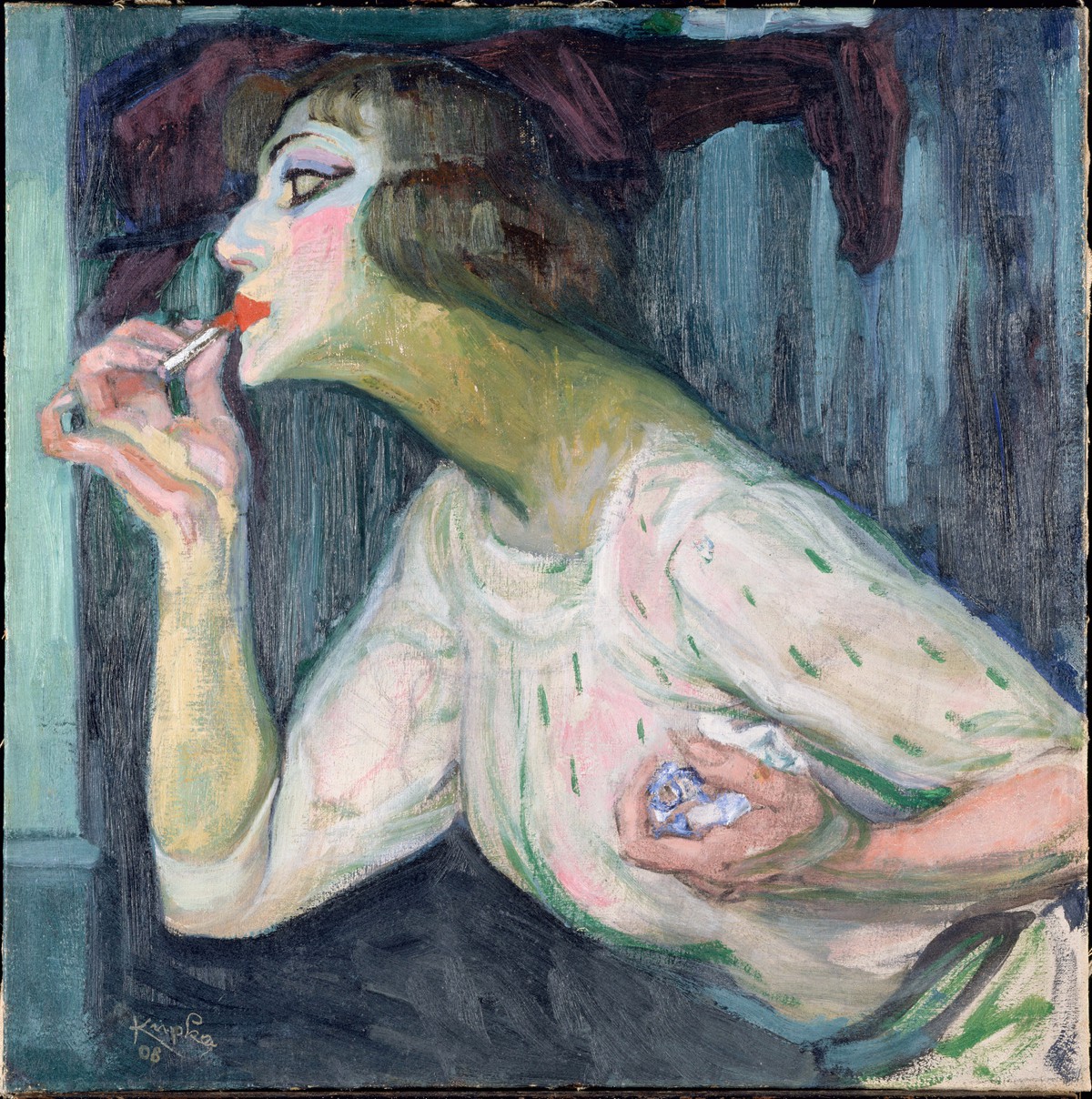 20世纪捷克画家弗朗齐歇克·库普卡(František Kupka)的作品,表现涂口红的女士,此作品藏于巴黎蓬皮杜艺术中心