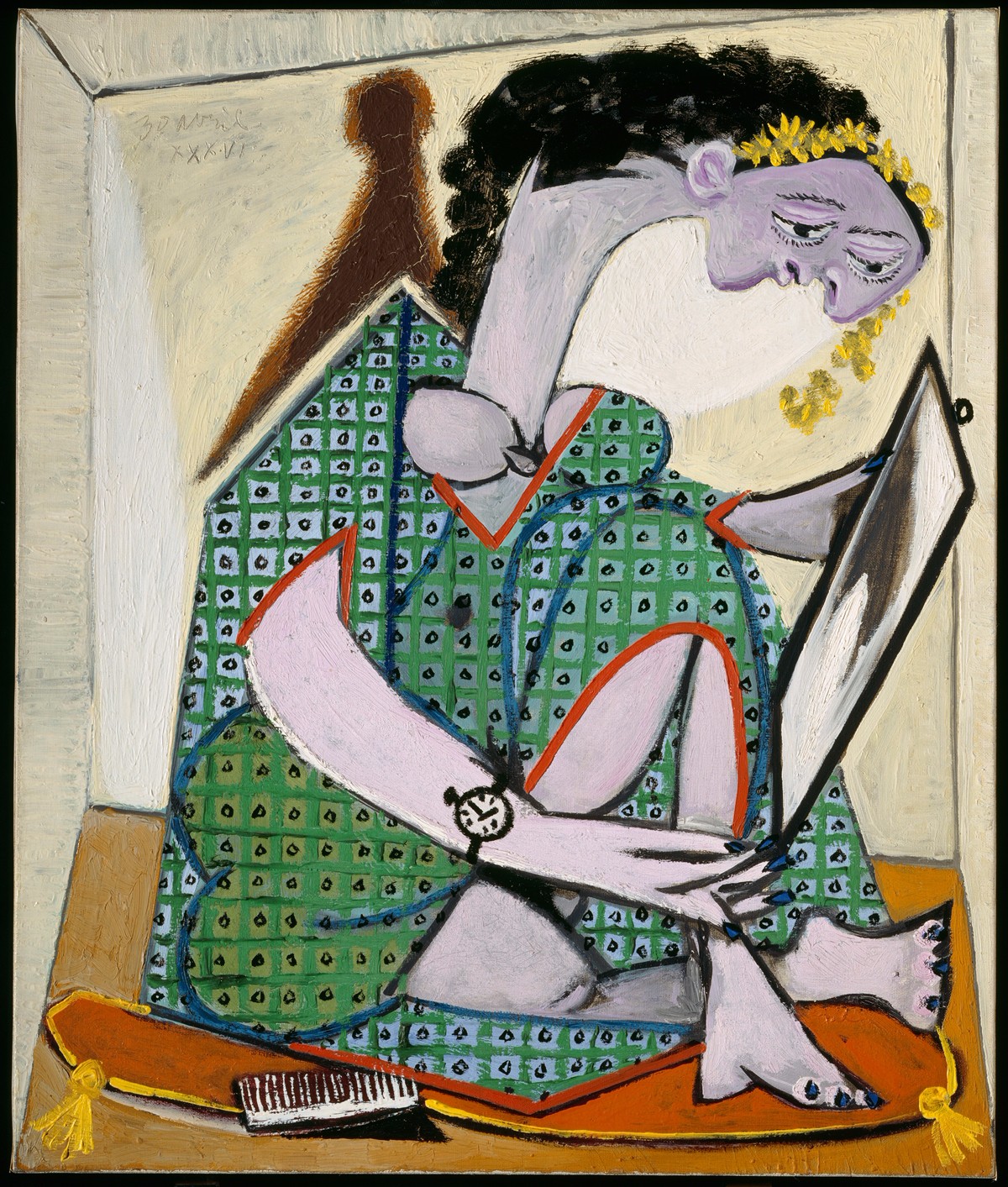 1936年毕加索创作的《戴手表的女人》,收藏于巴黎毕加索博物馆