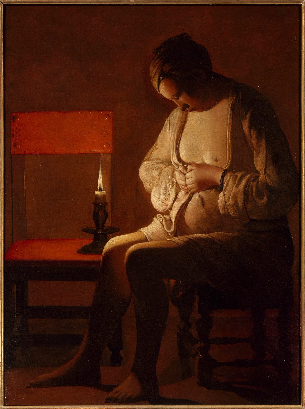 相较于当时中产阶级的优质生活方式,17世纪乔治·德·拉·图尔(Georges de LaTour)的作品,则描绘了当时底层民众的简陋生活处境,画面中穿着粗布衫的妇女,借着昏黄的烛光在自己身上寻找跳蚤。此作品藏于南希洛林博物馆(Nancy, Musée Lorrain)