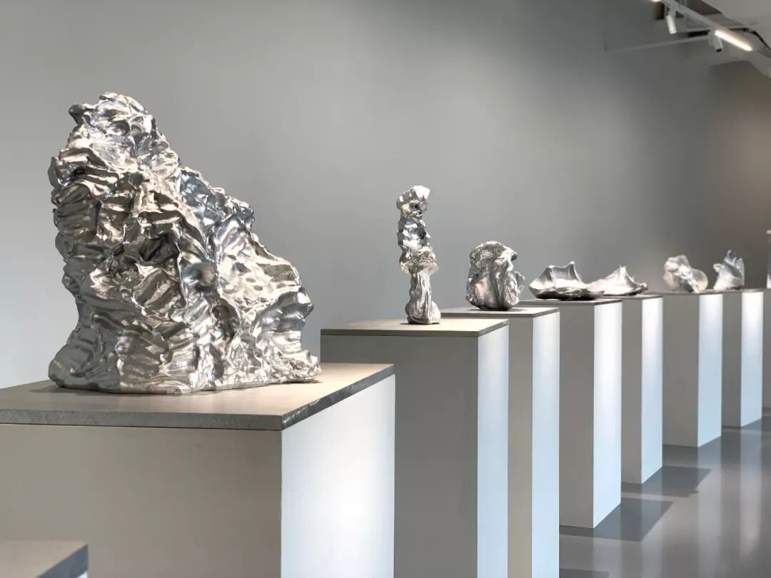 刚刚在北京民生现代美术馆举行“体系的回响——隋建国1997-2019”个展的艺术家隋建国,携多件《悦来拓扑-云中花园-物体》作品而来,雕塑群像再现着艺术家身体(手)和物质(泥)接触生成的偶然痕迹,也是十年的创作成果。汪建伟则以画作和装置并置,其中,《寒武纪 NO.6》,材料直接来自生产过剩的钢材市场,用来制造货币的镍,成矿时代主要在五亿年前,而相对于它的生命周期而言,近一百年来钢材的能量流动历史不过是资本所唤起的暂时性癫狂。汪建伟着眼于材料的历史,将它们制作成一组相互平行的平面。