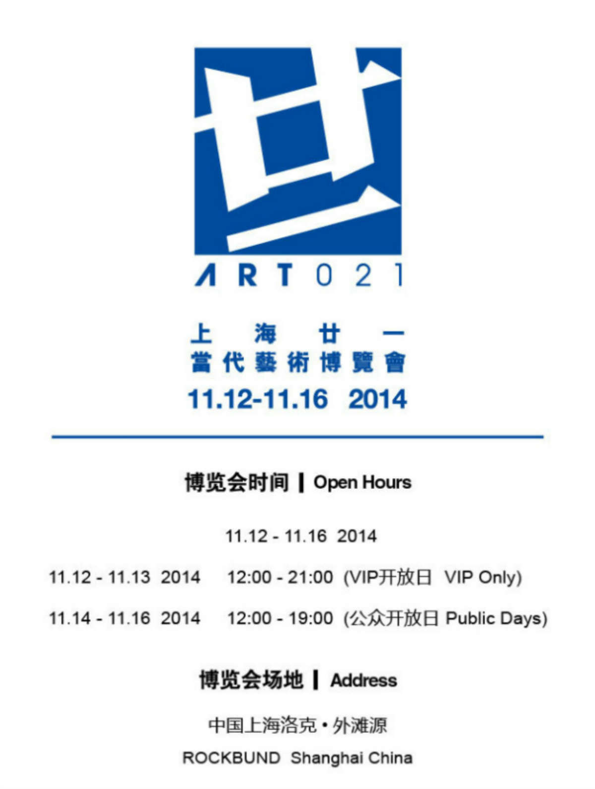 2014 ART021上海廿一当代艺术博览会于今天在外滩洛克·外滩源正式拉开帷幕,预展从中午12点开始,于14日正式对公众开放,展会将持续到11月16日。