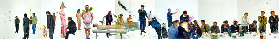 《儿时朋友都胖了》,纸上丙烯,150x1100cm,2004 – 2005年