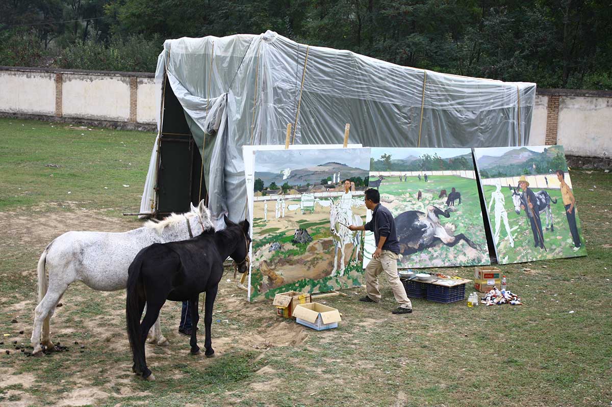 2008年刘小东在甘肃天水进行写生项目《易马图》的创作