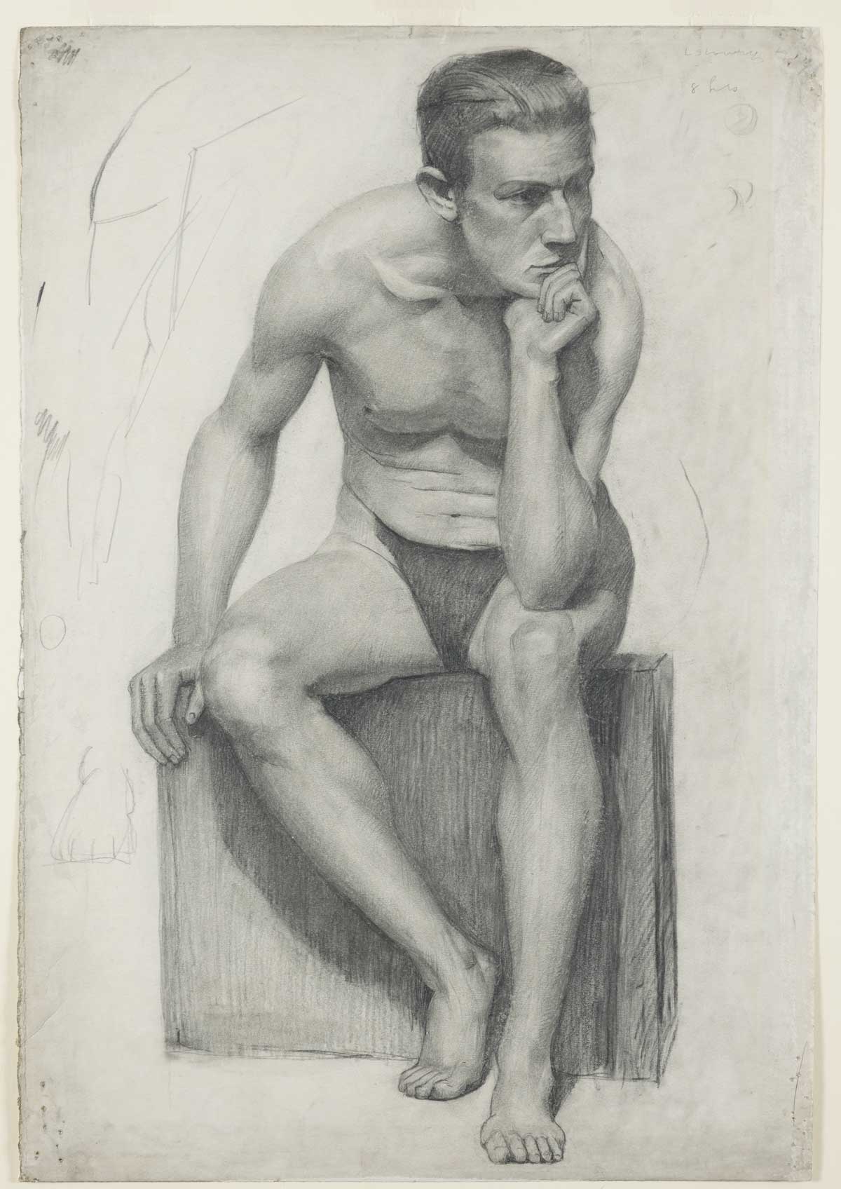 L.S.洛瑞,《坐着的躶体男子》,(Seated Male Nude),约1914年