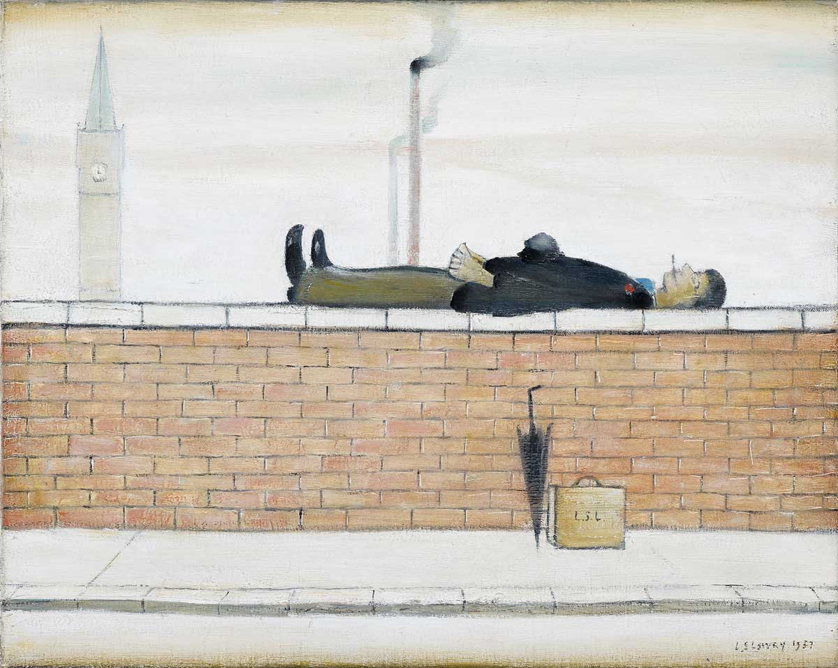 L.S.洛瑞,《躺在墙上的男人》,(Man Lying on a Wall),1957年