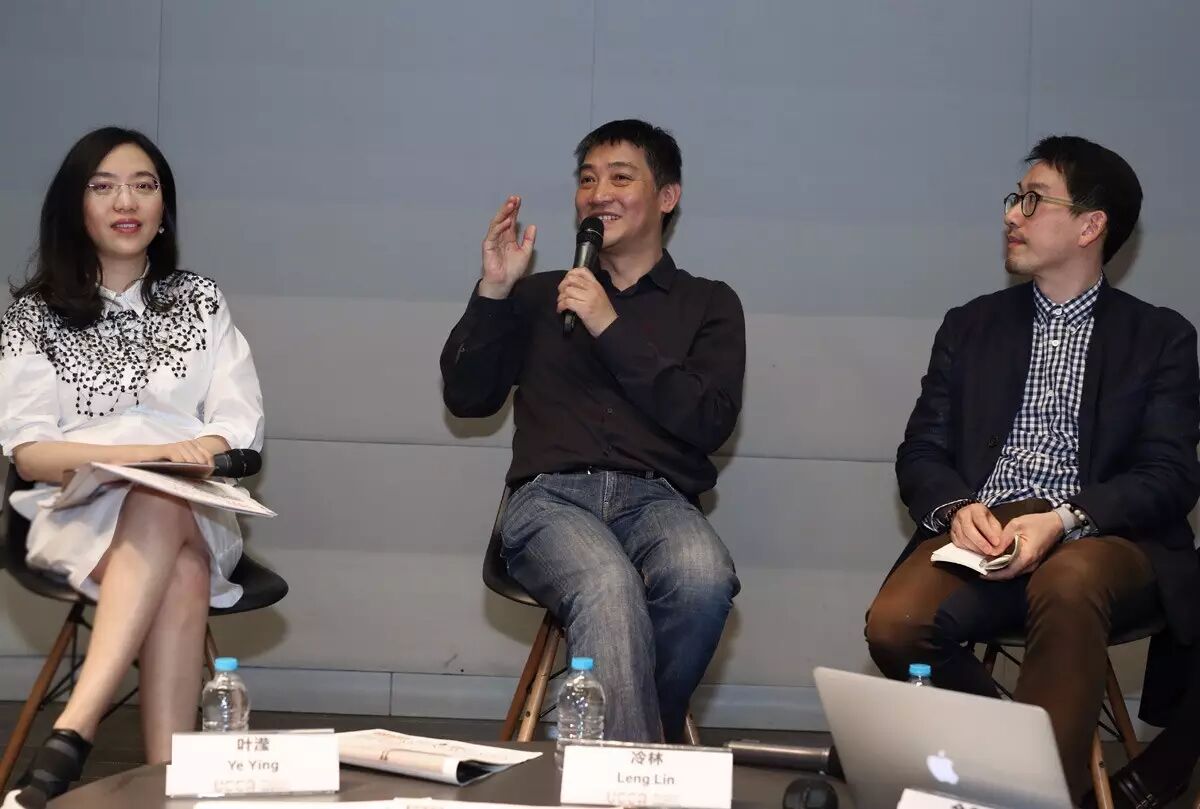 ▲ 从左自右分别为本次论坛主持《艺术新闻》主编叶滢,论坛嘉宾佩斯北京总裁冷林及“艺术北京”艺术总监金岛隆弘