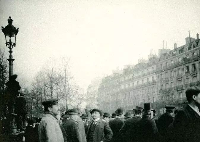 ▲ 萧伯纳在巴黎街头拍摄前往观看罗丹《思考者》的游人,1904年,图片来源:Bernard Shaw Estate / National Trust / PA