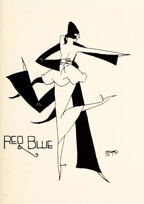 福克纳的绘画风格独特,像时装画,又有点漫画风格,颇为时髦。一组标题为《爵士年代》(Jazz Age)的插画便展现了福克纳细腻的笔触与独特的风格与惊人的绘画天赋。