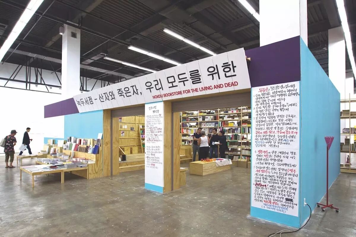 5▲ 多拉·加西亚(Dora García),《生与死的绿豆书店》(Nokdu bookstore for the living and the dead),2016年光州双年展,图片来源:Gwangju Biennale