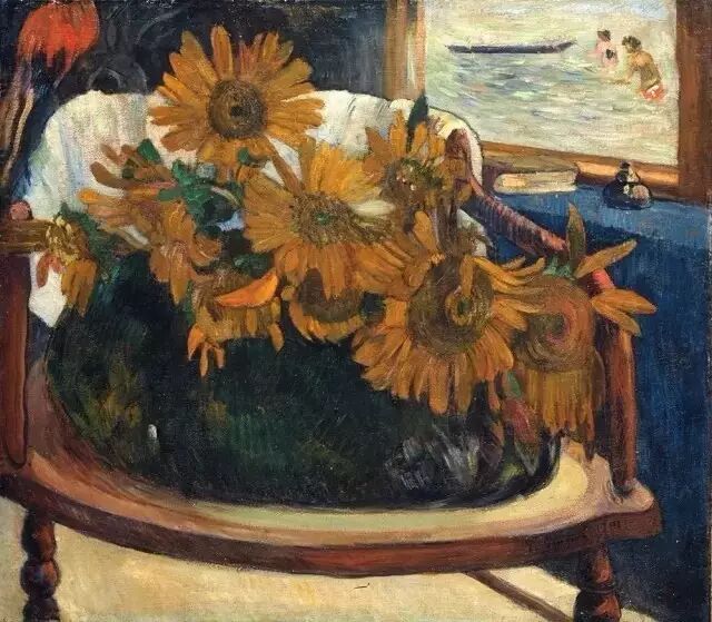 在梵高逝世的11年后,高更绘制了《向日葵》。向日葵是梵高生前喜爱的题材,而这幅画是高更委托友人专程从欧洲带来向日葵花种子完成的,在遥远的大溪地高更寄寓了对梵高的敬意与怀念。