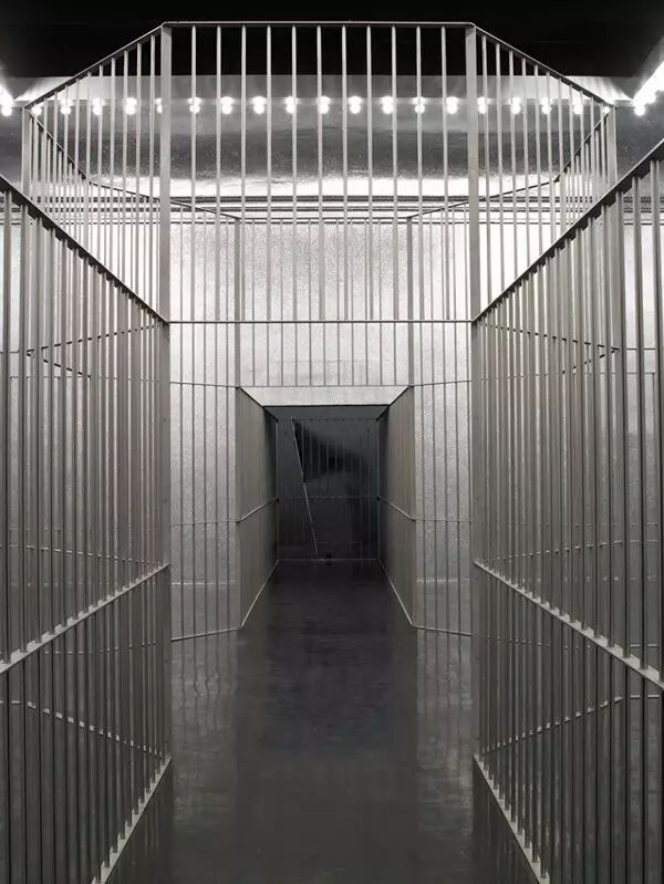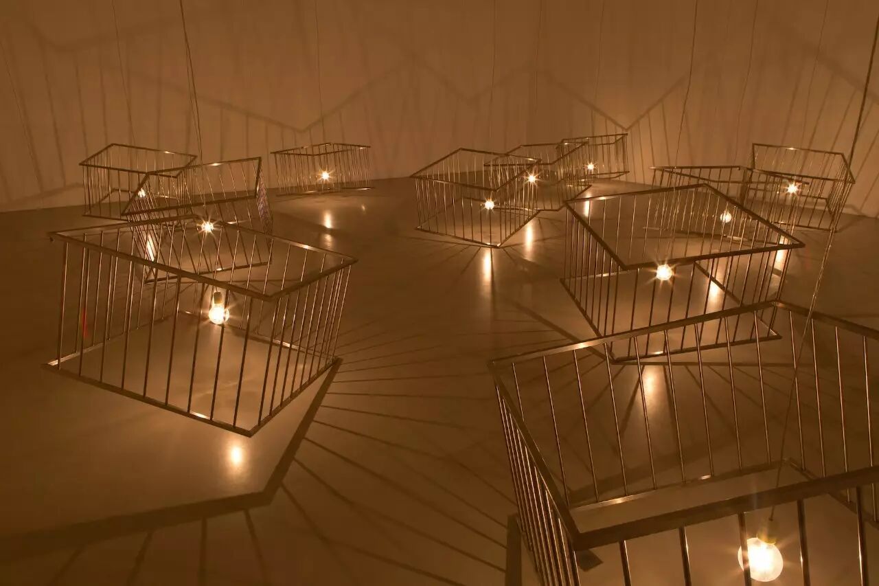 与此同时,勒维克越来越被频繁使用的元素还有笼子,或者说某种呈现明显社会规范性的日常物。在1998年,他曾在一次采访中说:“在我创作的初期,我用一些具有个人自传意义的物品和与我童年相关的家具来做作品,试图重建一些我们都熟悉的童年情景和时刻。现在我试图关注更集体和成人的迷思:监狱,学校,医院。”很难把这些作品看做是不具批判性的,正如在霓虹灯作品中,我们似乎也能感受到某种自白式的、虚无主义的、对社会的质问。
