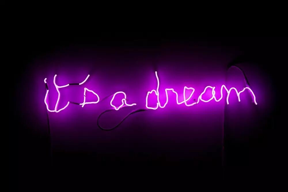 ▲ 克劳德·勒维克《这是个梦》(It’s A Dream),紫色霓虹灯,16 ×18 厘米,手写字体:Romaric Étienne,2016年,摄影:Julie Joubert,© ADAGP Claude Lévêque,Kamel Mennour