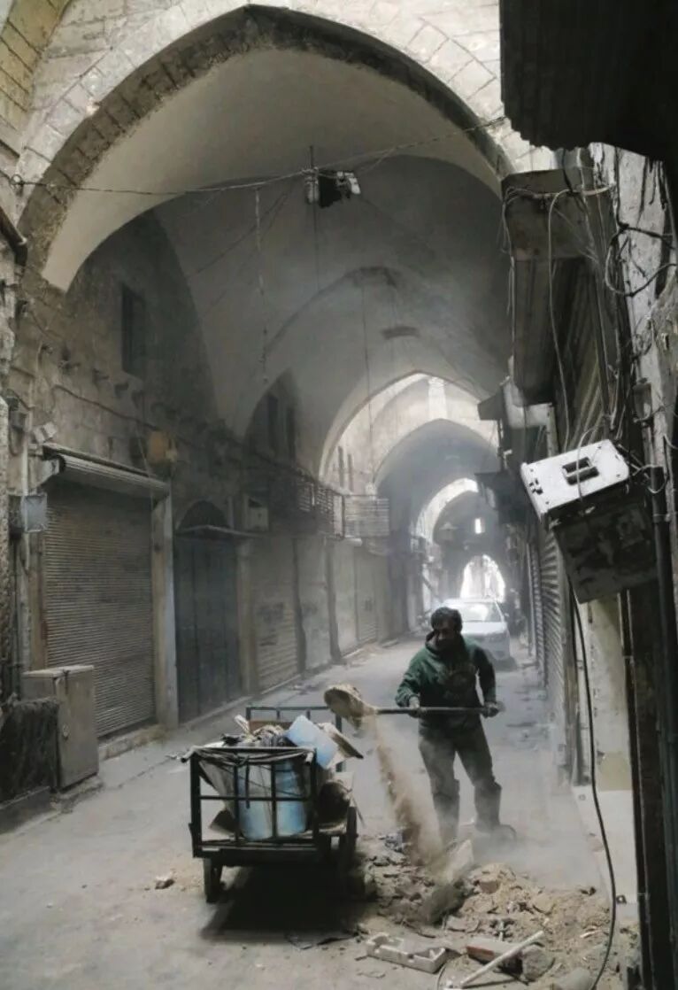 ▲ 2017年,阿勒颇的集市清理完废墟后,空荡荡的场景,图片来源:theartnewspaper