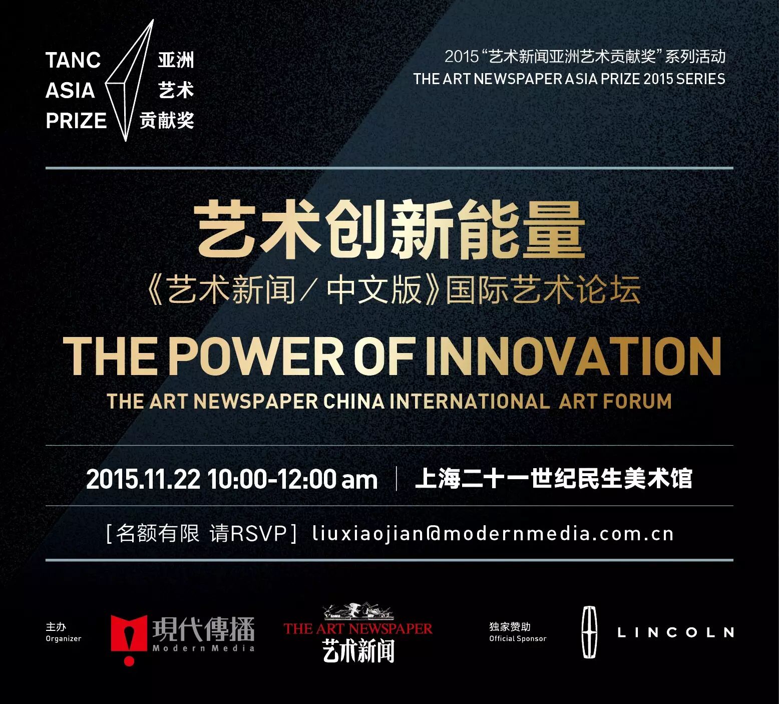 2015“艺术新闻亚洲艺术贡献奖”系列活动将于11月22日(周日)于上海二十一世纪民生美术馆举行,具体安排如下: