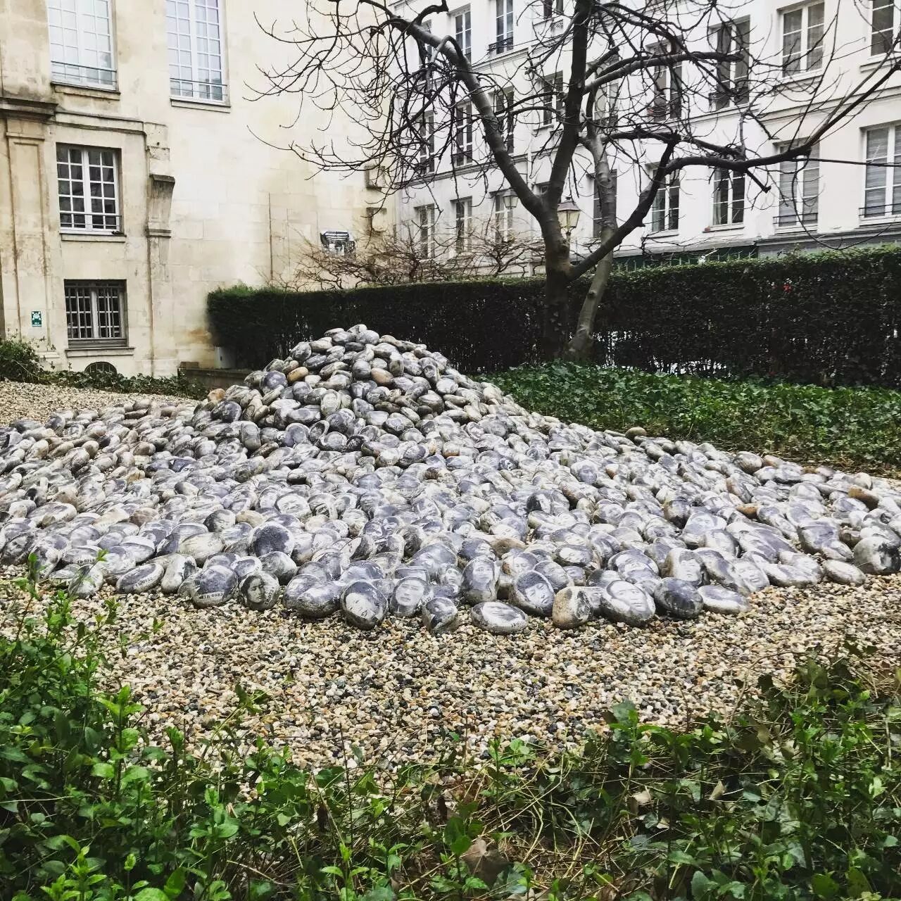 策展人弗朗索瓦·德明熙(Francois Tamisier)在形容这件作品时说:“那些被放大在鹅卵石上的面孔都是他之前的邂逅。没有身份的形状各异的石块,因为这些永远纪录在鹅卵石中的目光而承载着有关那些时光的记忆。这种让人追忆的渴望告知我们:我们终将逝去那一共同命运,不可回避地自然消逝、分解意识、化为虚无。”